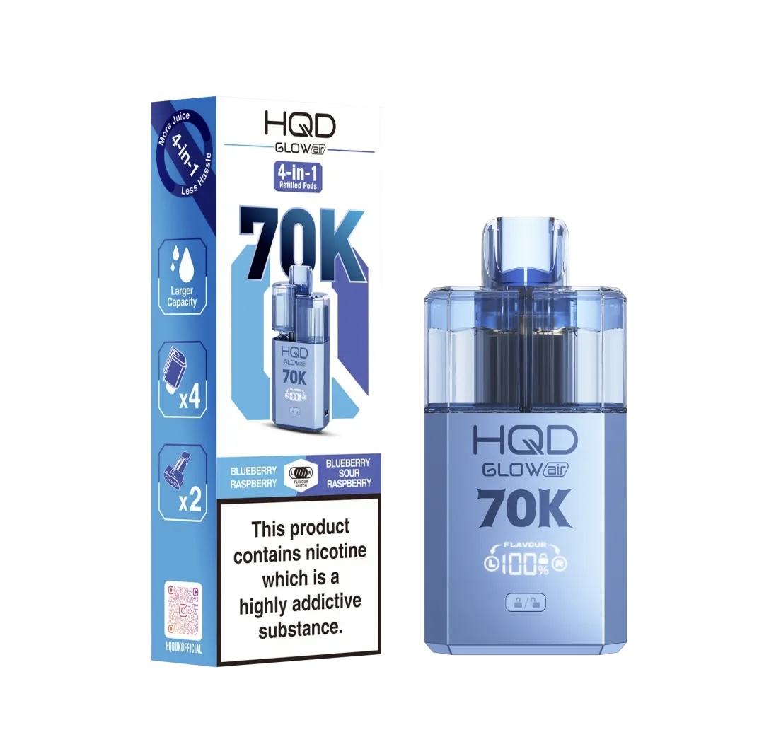 Specifications: Blueberry Raspberry / Blue Sour Raspberry HQD Glow Air 70K KIT
