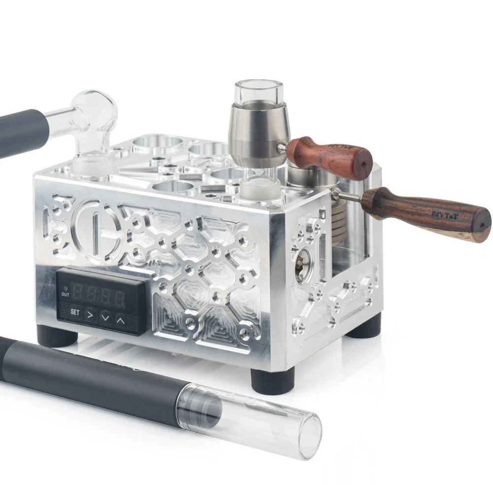 Featuring Cannabis Hardware’s preferred configuration of the new Mercury Flower Diffuser, paired with the modular Matrix Bowl in 18mm, takes care of all your vaping needs. Not only that, the dedicated dab setup, featuring a 25mm Banger with a marble cap and terp pearls, along with a stainless dabber, ensures that you can enjoy concentrates just as much as flower.