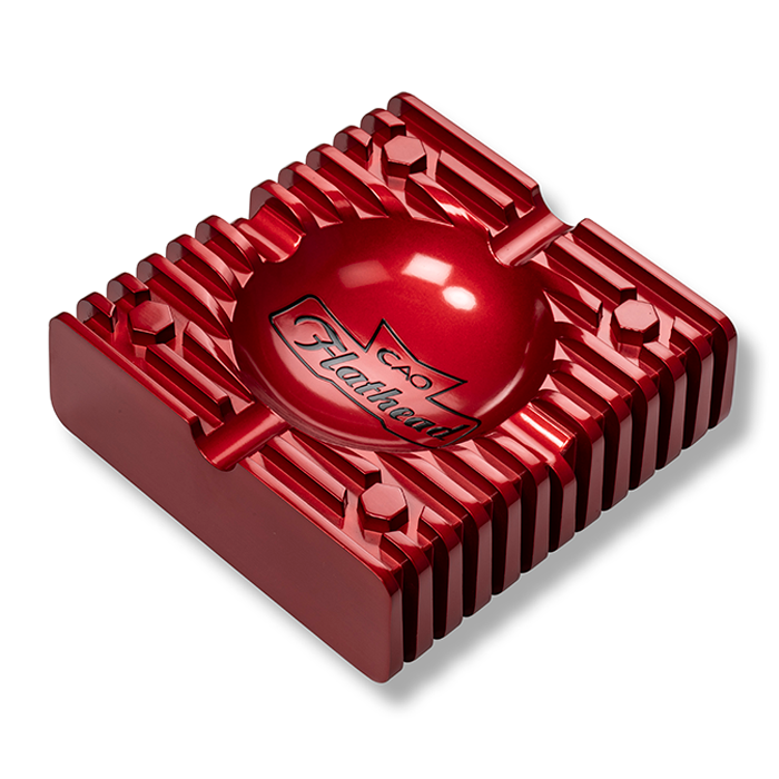 Discover the CAO Flathead Logo Ashtray, a high-gloss metal ashtray styled like a hot rod engine, perfect for cigar lovers and classic car fans alike.