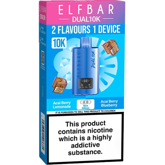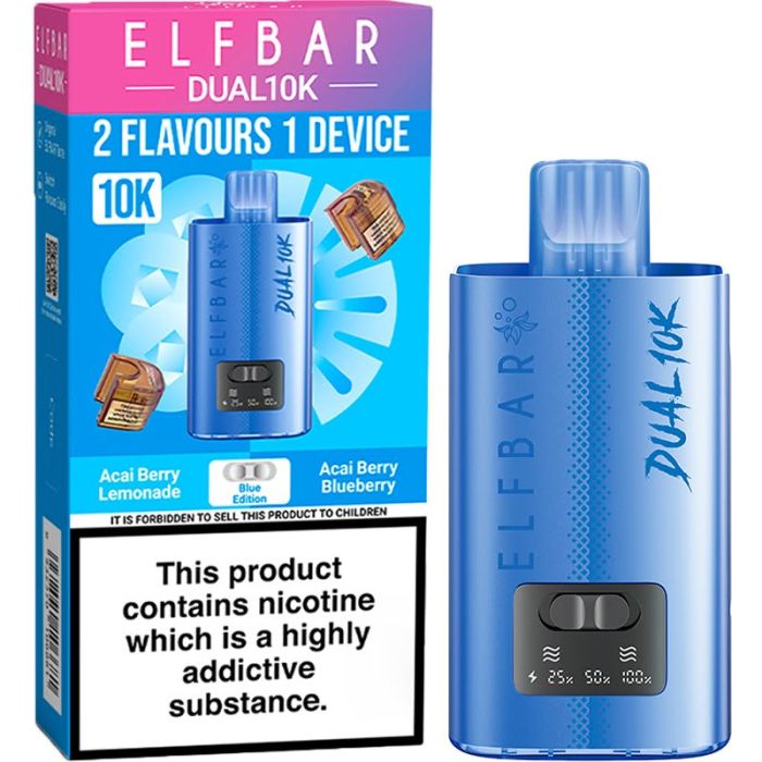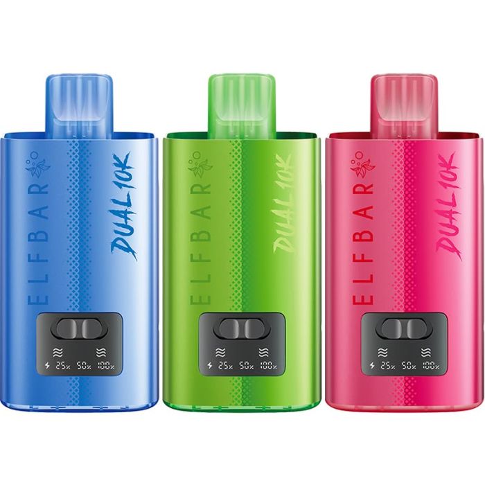 Each kit includes a 12ml pod & refill, with 6ml of each flavor, in a 20 mg/ml nicotine strength, in different flavors, that can be switched between at any time. Additional Elf Bar Dual 10K pod & refills are available to purchase separately, to continue using the same Elf Bar Dual 10K device.