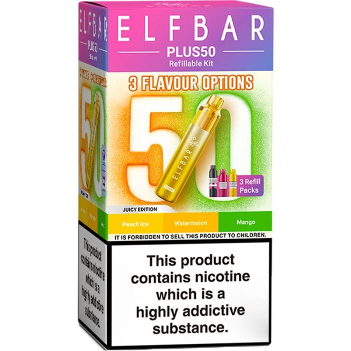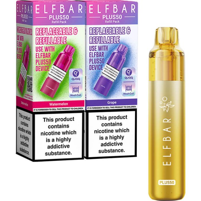1 x Elf Bar Plus 50 device (comes with 3 x 2ml pod & 3 x 8ml refill)