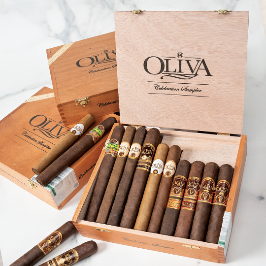 Celebrate with a whopping discount on Oliva’s highest-rated cigars! Score 20 ultra-popular Oliva gems, including the 96-rated, former ‘#1 Cigar of the Year,’ Serie V Melanio, 95-rated Serie V Melanio Maduro, the original 95-rated Serie V, 92-rated Serie V Maduro, 94-rated Serie O, 92-rated Master Blends 3, 91-rated Serie G, 93-rated Serie G Maduro, the ultra-rare Monticello, and the creamy and mellow Connecticut Reserve! The Oliva ‘Celebration’ Sampler includes two of each blend handcrafted at the company’s state-of-the-art cigar factory in Estelí, Nicaragua, where every roller honors the highest standards for flavor, aroma, and consistency. The finest premium long-filler tobaccos are aged to perfection and bound by a luscious variety of wrappers in several classic sizes. Taste why Oliva scores hit after hit with the critics when you add this unbelievable wish list of prestigious Oliva cigars to your humidor for a fraction of the price!