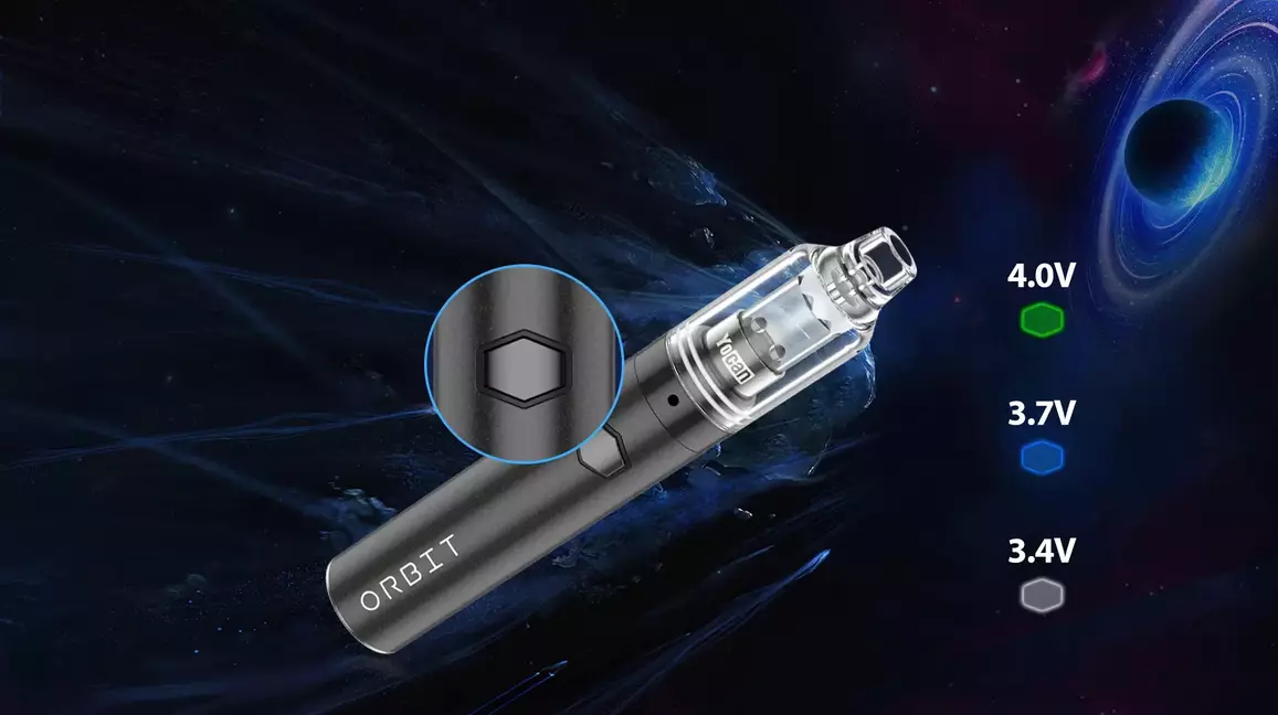Variable Voltage: The Orbit has 3 pre-set temperatures which are indicated by the LED light around the button. 3.4V(White), 3.7V(Blue), 4.0V(Green)